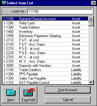 If you do not want to enter all the account information now, type the account number in the white box next to Look for : at the top of the Select from List window.