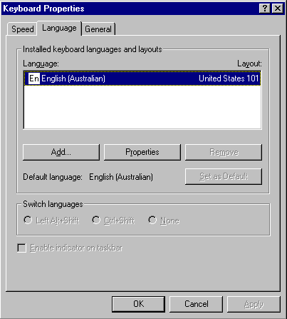 - You will be back at the Language tab in the Keyboard Properties dialog box.