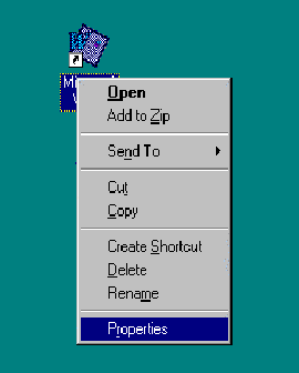 - Click right on the picture of the shortcut icon. A shortcut menu will appear.