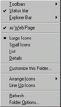 You can change the way the icons are seen and arranged for each window you open in My Computer by using the View menu.