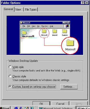 - Experiment with different settings. When you are finished, select the settings you like and close the dialogue box. Make sure you are at the My Computer window.