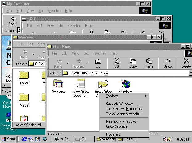 While we have these windows open, we will look at the options for arranging windows in the taskbar shortcut menu.