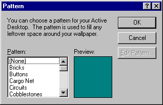 - Click OK to see the pattern displayed on the computer monitor on the Display Properties dialogue box.