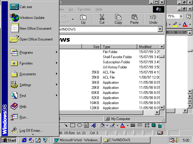 Moving Around Windows 98