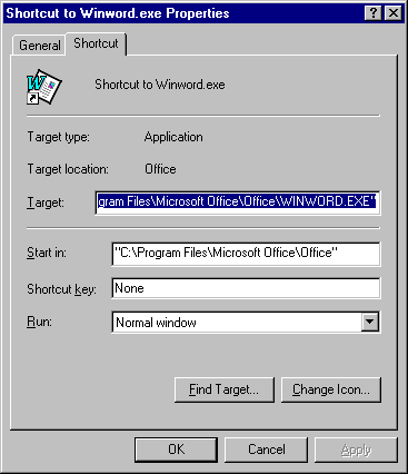 - Type in the program name Winword.exe in the Named field.