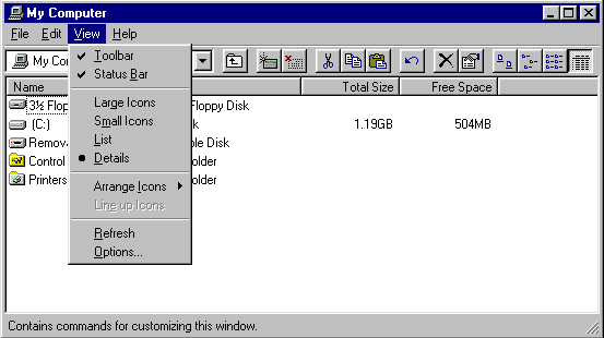 - If you do not have a tick next to Tool bar or Status bar, these bars will not be visible in your window.