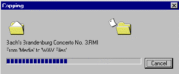 - Select Edit/Paste. The files will be copied to the folder WAV Files. The Copying dialog box will appear. The copied files should be shown under Bach's Brandenburg Concerto No. 3.RMI in the Files pane, as below.