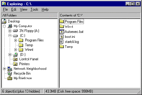 The Windows NT Explorer window is divided into two panes. The left one is the Folders pane, the right one is the Files pane.