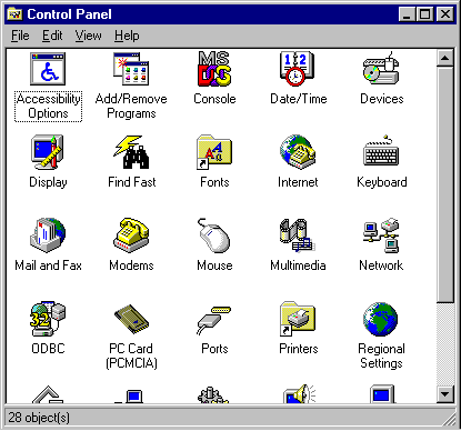 - Select Start/Settings/Control Panel. The control panel window will appear on your desktop.