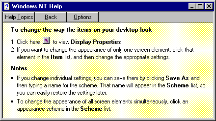 - The third field shows a list of help topics for the selected word. Double click on the topic To Change the Background of Your Desktop to display it.