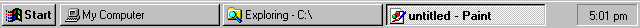 - Open My Computer, Windows NT Explorer and the Paint program in the Accessories menu. Your task bar will look like the one below.